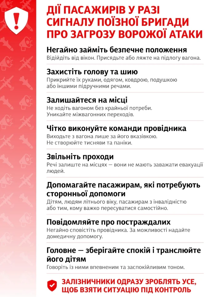 Правила поведінки пасажирів під час евакуації через загрозу ворожого удару у вагоні поїзда
